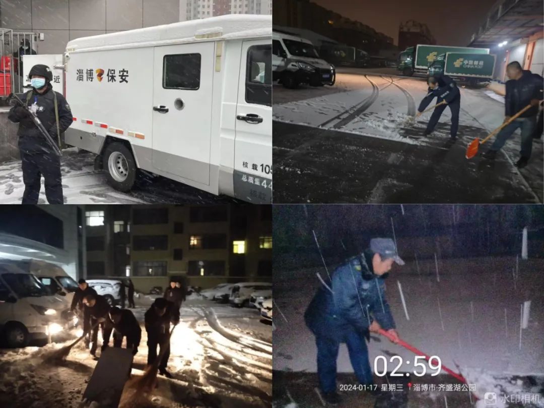 盡管寒風(fēng)刺骨,雪花紛飛,市保安公司全體員工提前到崗,把重點區(qū)域的積雪有序、高效的清理干凈,為人們的雪天出行保駕護(hù)航,讓社會感受到風(fēng)雪天淄博保安送出的一份溫暖。
