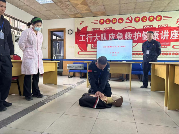 為進(jìn)一步提高基層員工面對突發(fā)疾病的應(yīng)急處置能力,近日,金融護(hù)衛(wèi)中心工行大隊(duì)特邀湖田中心醫(yī)院醫(yī)生,在大隊(duì)駐地開展應(yīng)急救護(hù)健康講座。 講座現(xiàn)場,醫(yī)生認(rèn)真細(xì)致地講解了心肺復(fù)蘇的基本流程和步驟,并對徒手心肺復(fù)蘇操作要領(lǐng)進(jìn)行了重點(diǎn)說明。隨后現(xiàn)場演示了胸外心臟按壓、清理口腔異物、開放氣道、人工呼吸,并對心肺復(fù)蘇按壓深度、按壓頻率等重點(diǎn)環(huán)節(jié)的操作要領(lǐng)和流程逐一進(jìn)行講解和示范。隊(duì)員們積極參與,現(xiàn)場體驗(yàn)徒手心肺復(fù)蘇操作,確保此次活動取得實(shí)效。 工行大隊(duì)將持續(xù)深化關(guān)心關(guān)愛基層職工工作,不斷提升職工應(yīng)對突發(fā)緊急事件的自救和處置能力,增強(qiáng)職工的獲得感、幸福感。